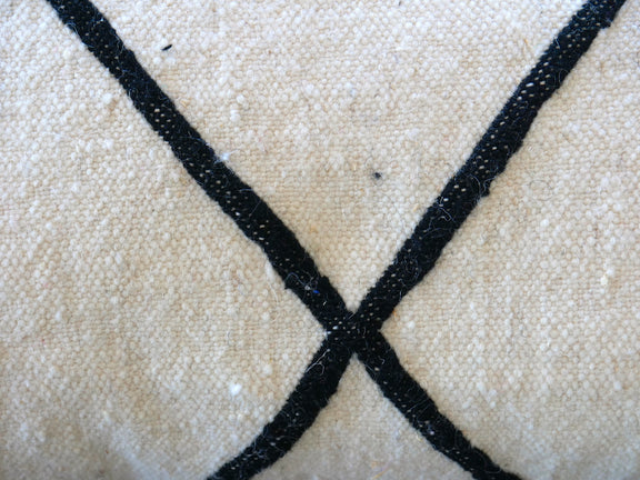 Cream wool cushion with black cross detail, Linen back and feather insert