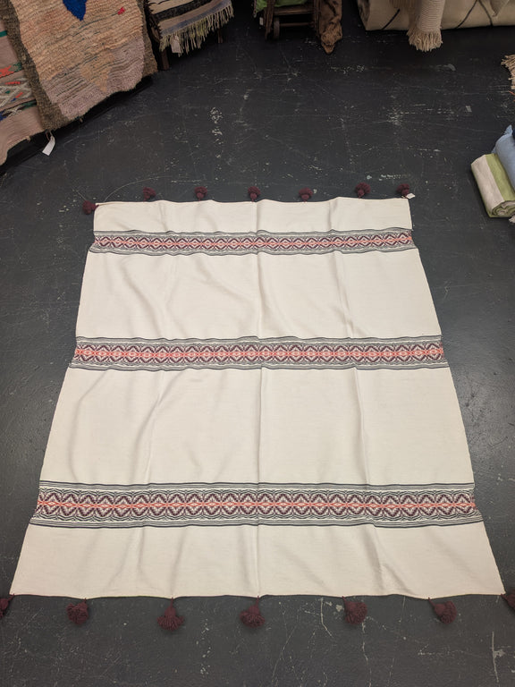 2.05m long plus pompoms x 1.8m wide (Plus 10cm of Pompoms each end)