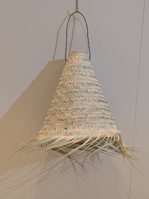 These stunning palm leaf lampshades are hand woven in Marrakech by skilled artisans who use locally sourced, renewable materials.