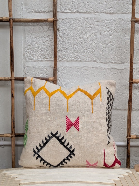 Beautiful Whadzm rug fragment cushion made from 100% wool - includes feather inner.