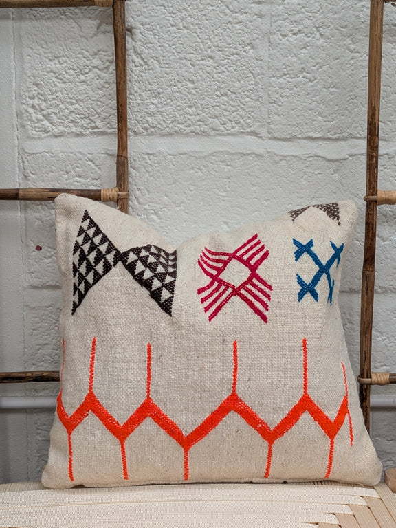 Beautiful Whadzm rug fragment cushion made from 100% wool - includes feather inner.