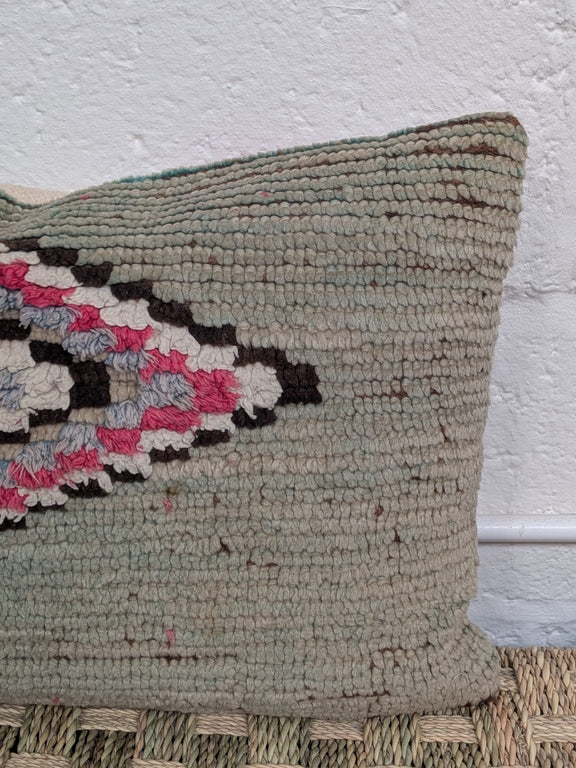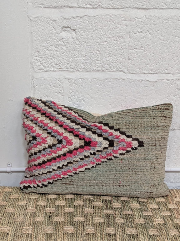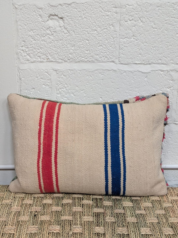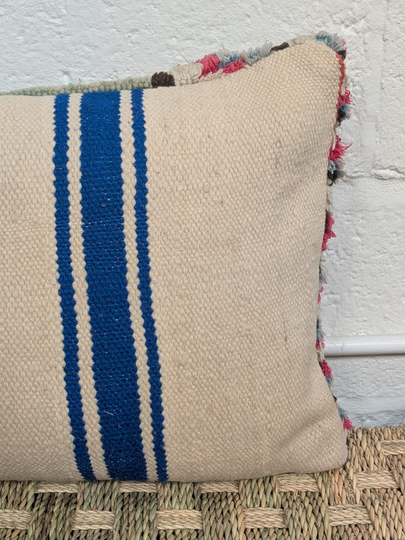 Beautiful rug fragment cushion made from 100% wool with saharan blanket kilim on reverse - includes feather inner.