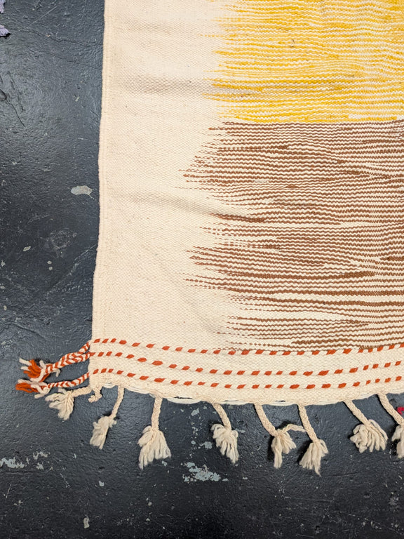Woven by skilled artisans in the High Atlas Mountains, this striking kilim captures the warmth and richness of autumn. Earthy tones of russet, ochre, and deep terracotta are interlaced with soft neutrals, evoking the colours of falling leaves and sunlit valleys.