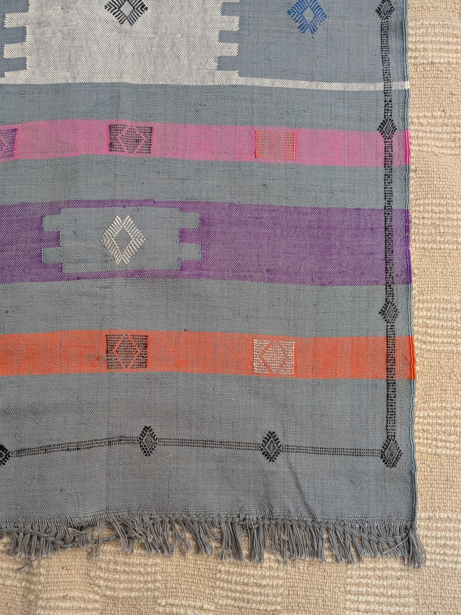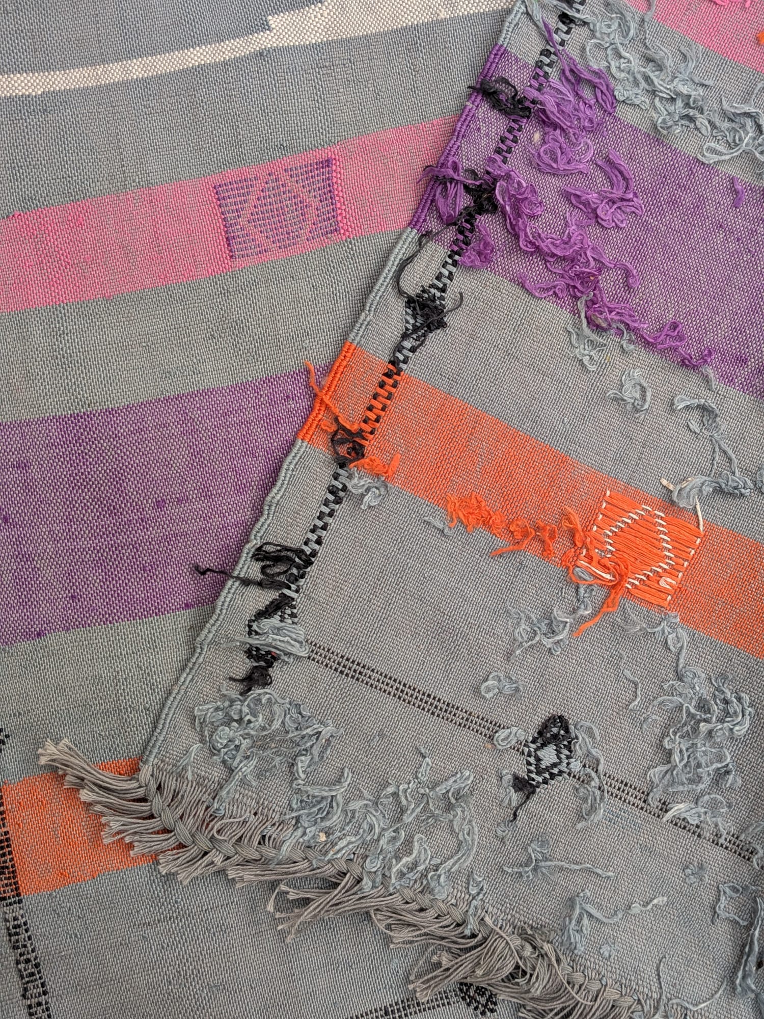 Each rug is finished with delicate hand-embroidered motifs, making it a one-of-a-kind piece of textile art and the perfect addition to a vegan home.
