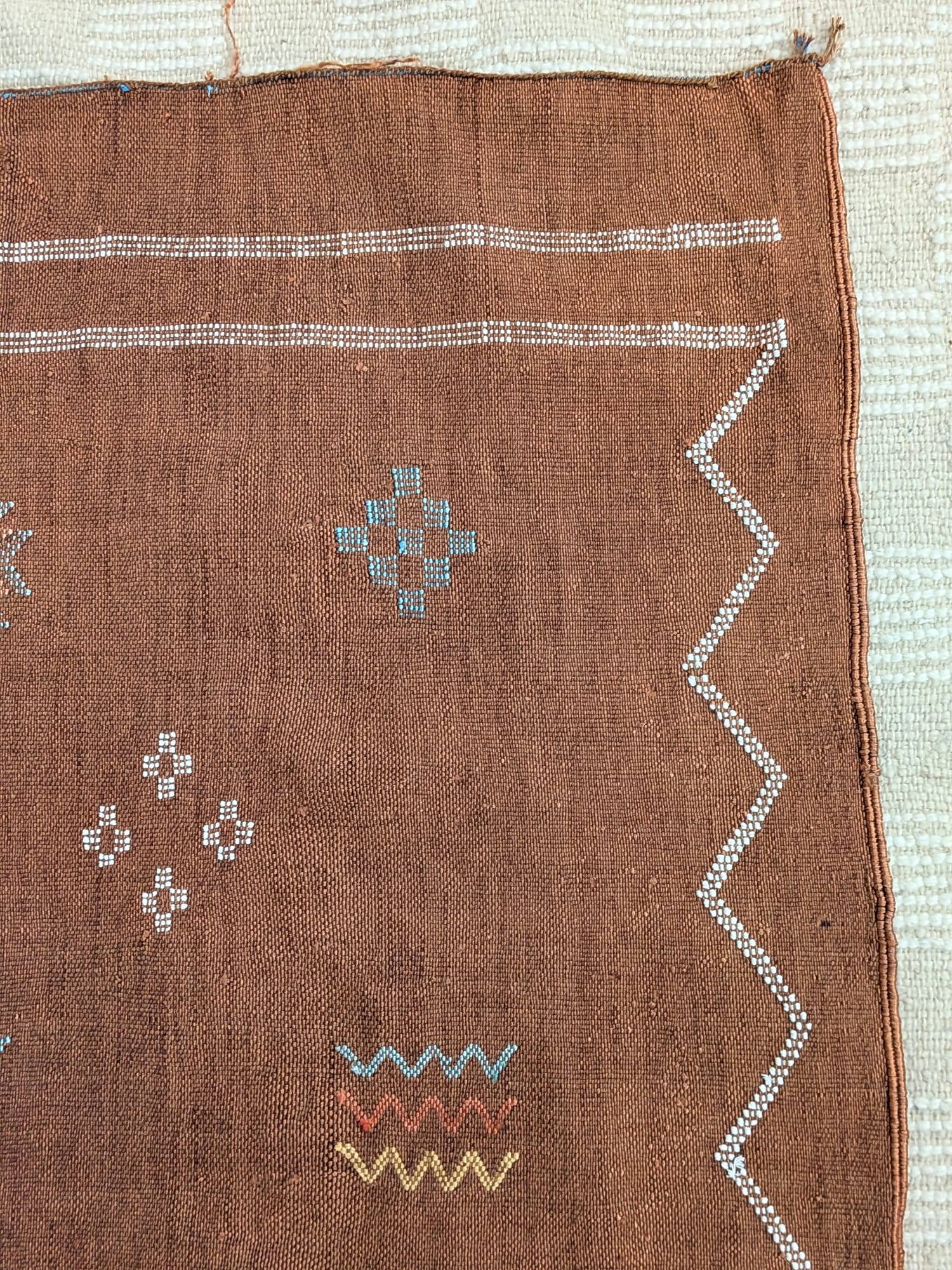 Each rug is finished with delicate hand-embroidered motifs, making it a one-of-a-kind piece of textile art and the perfect addition to a vegan home.