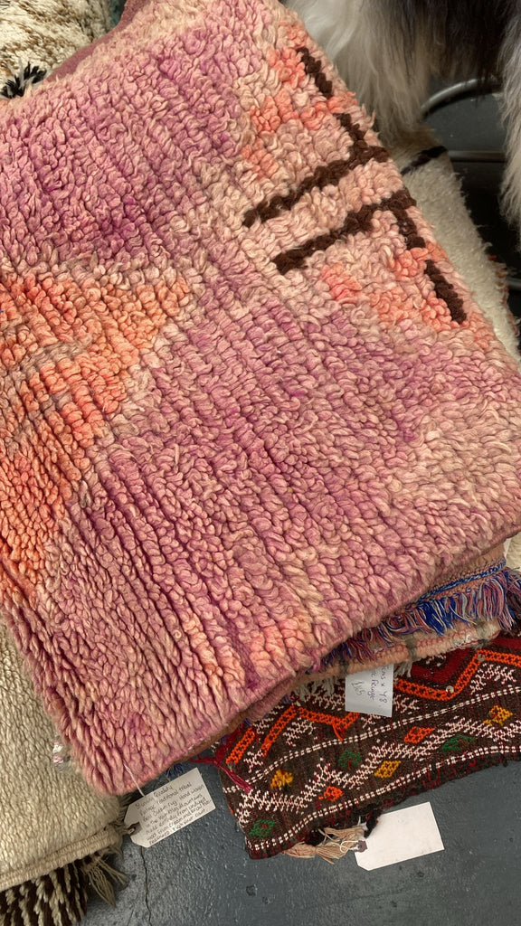 This Antique ‘Azilal’ runner is all wool with beautiful faded pinks and touches of mauve. It has the advantage of being light weight and easy to wash and dry making it perfect for livening a passageway or corridor.