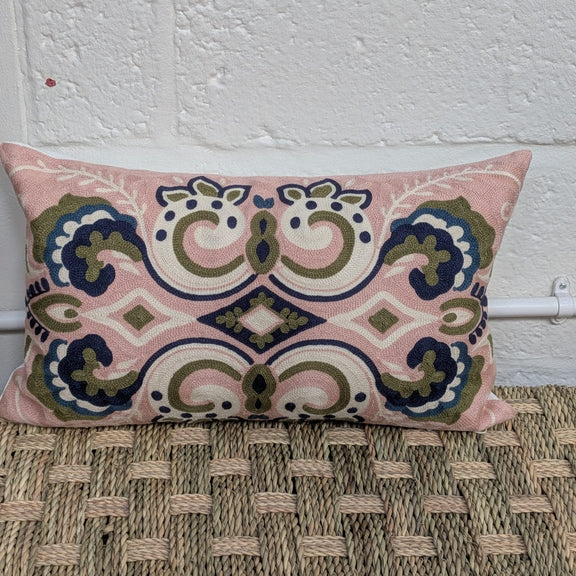 Beautiful hand embroidered cushion made from 100% wool - includes feather inner.