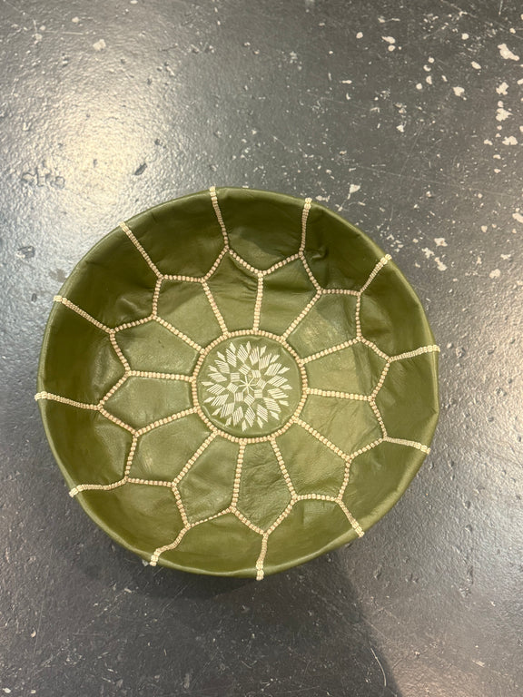 Mini Leather Pouffe - Dark Olive Green POLP030