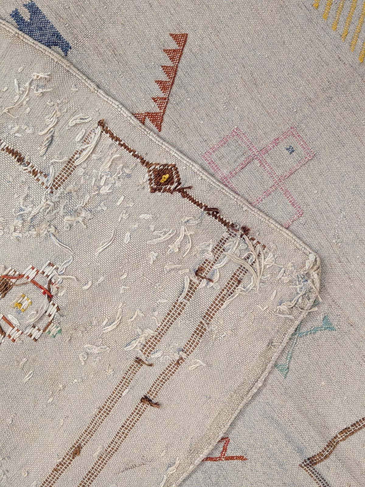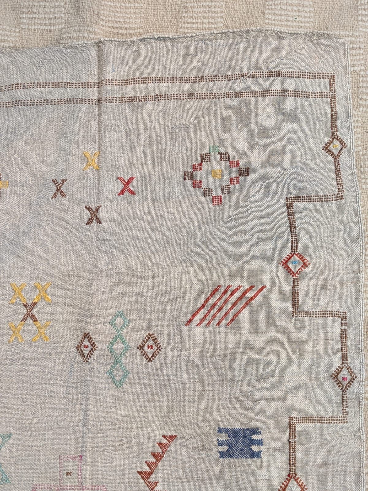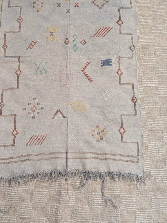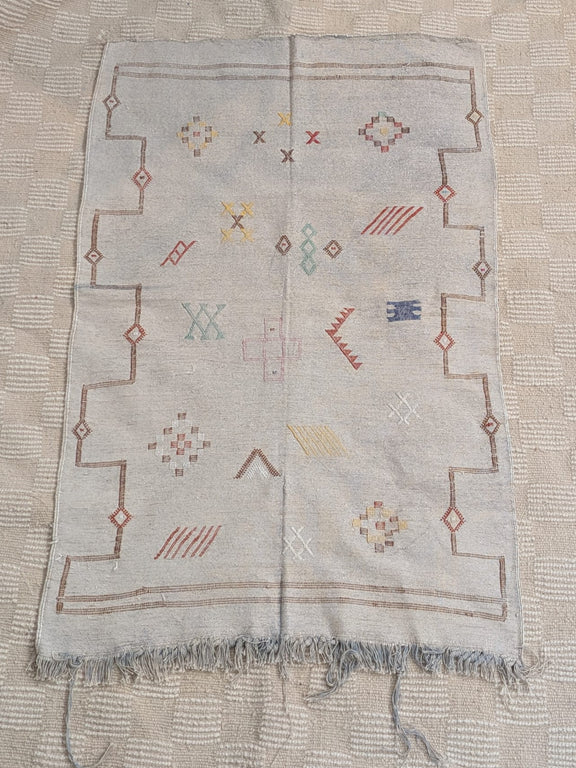 Each rug is finished with delicate hand-embroidered motifs, making it a one-of-a-kind piece of textile art and the perfect addition to a vegan home.