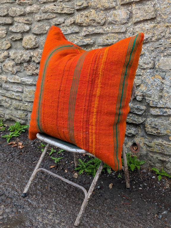 Beautiful fragment cushion made from a vintage saharan blanket 100% wool - includes feather inner.