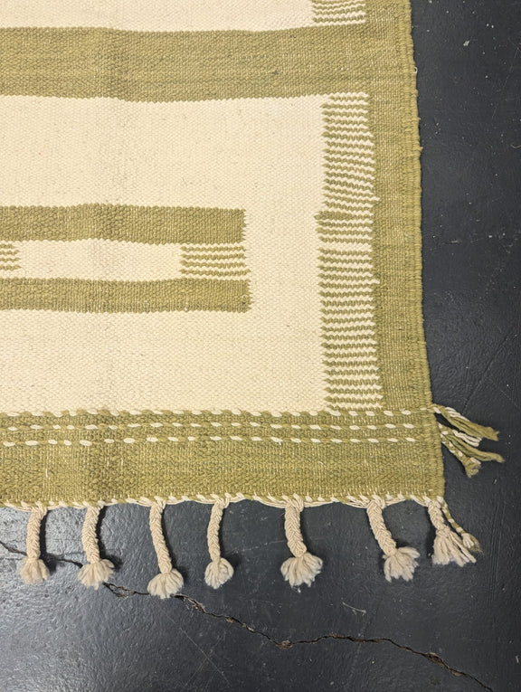 This soft double sided flatweave kilim has a slight geometric pattern which gives it interest.