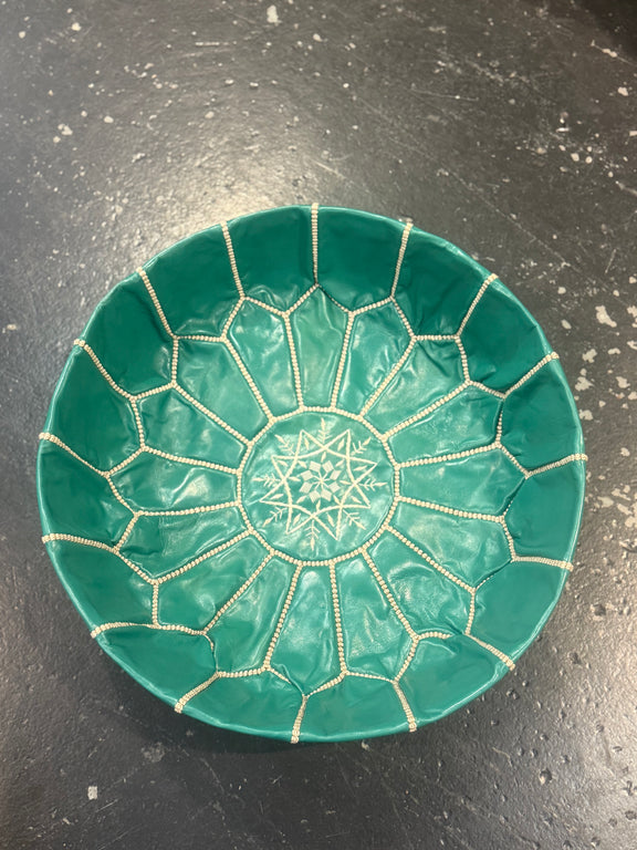 Teal Moroccan Leather Pouffe with white stitching POLP023