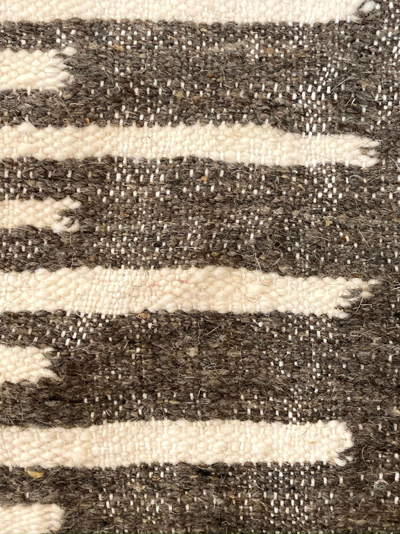 Handwoven Beni Ourain Flatweave Kilim. Natural undyed wool background with Kohl vegetable dye as the decoration